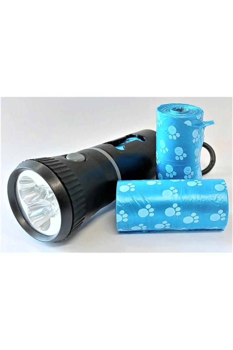 Supersmart lykt og hundeposedispenser i ett! Perfekt til høst og vintermørket - lyser opp kveldsturen og gjør det lettere å plukke opp etter hunden. Meget praktisk dispenser med hundeposer i håndtaket