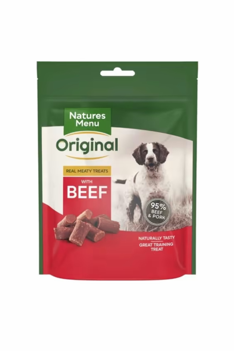 Natures Menu kjøttfulle godbiter er den ultimative treningsbelønningen. Laget med 95% ekte biff og svinekjøtt. En uimotståelig belønnings-godbit for hunder som ikke inneholder gluten.