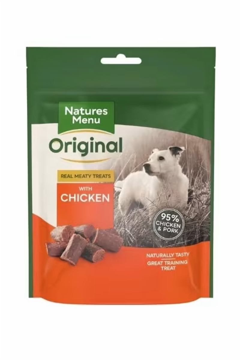 Natures Menu kjøttfulle godbiter er den ultimative treningsbelønningen. Laget med 95% ekte kylling og svinekjøtt. En uimotståelig belønnings-godbit for hunder som ikke inneholder gluten.