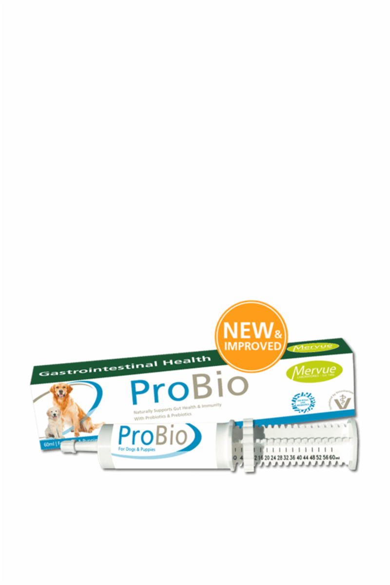 Vi er glade for å introdusere vår nye og forbedrede ProBio for hunder og valper. ProBio 60ml er nå spesielt formulert for naturlig å støtte tarmhelse og immunitet hos hunder og valper med kraften til probiotika (enterococcus faecium) og prebiotika (manno oligosaccharides og beta-glucans).