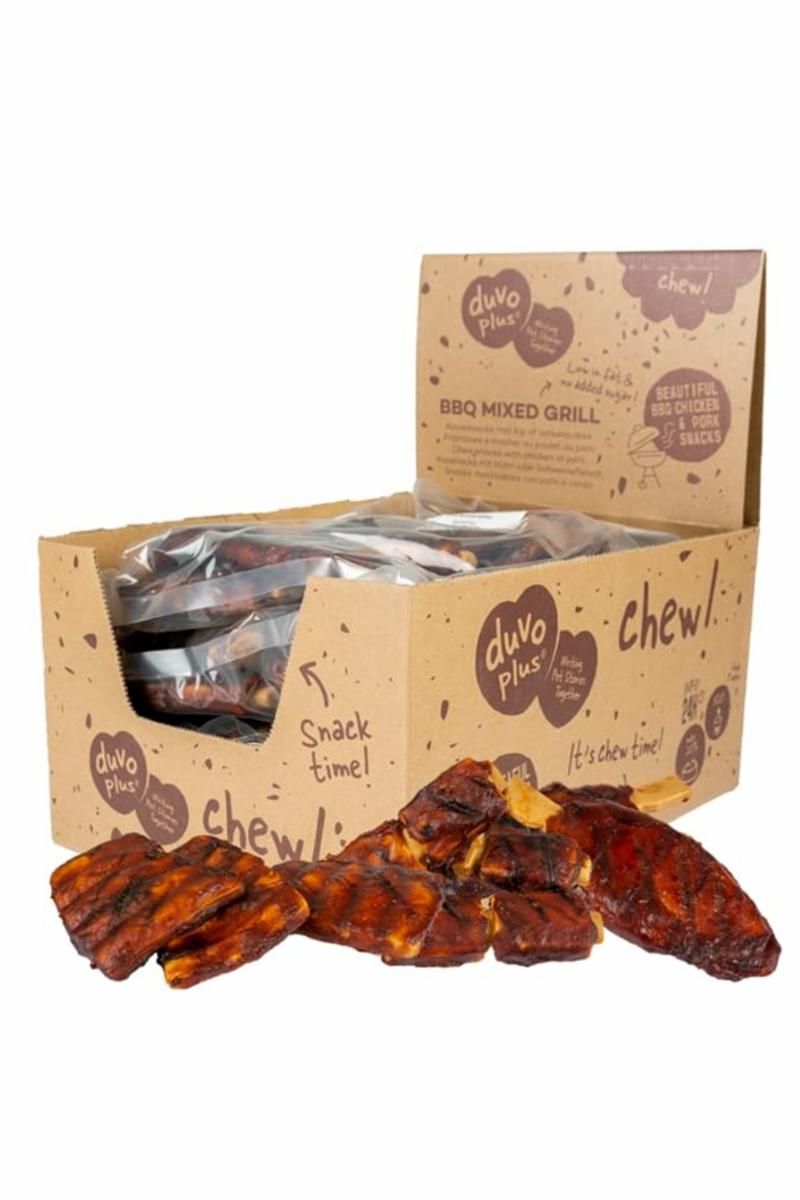 Deilig duvoplus tygg! Snacks gjør hunder og deres foresatte glade. Disse svine- eller kyllingbaserte grillsnacksene er ideelle som godbiter og holder hundene underholdt. De er også fri for tilsatt sukker og har et lavt fettinnhold. Men sørg for at kjæledyret ditt nyter dem med måte. Snacks bør tilbys som en ekstra godbit ved siden av hundens daglige meny.