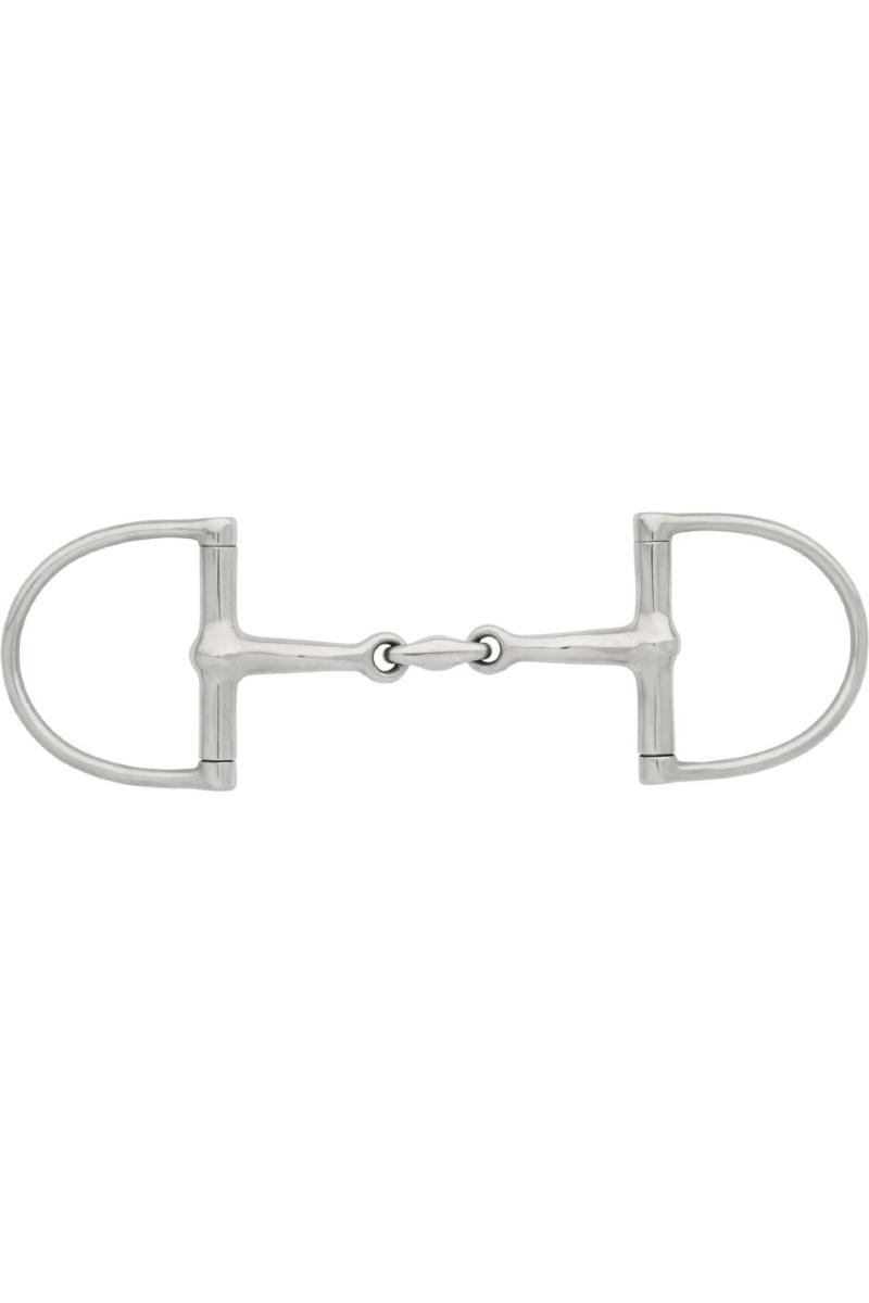 3-delt D-rings bid med afrundet stykke i midten. Det buede mundstykke sidder anatomisk i munden for at forhindre ubehag under ridning. Designet af rustfrit stål for at forhindre rust og gøre det nemt at rengøre. 75 mm bred D-ring, der passer til alle hovedstørrelser.