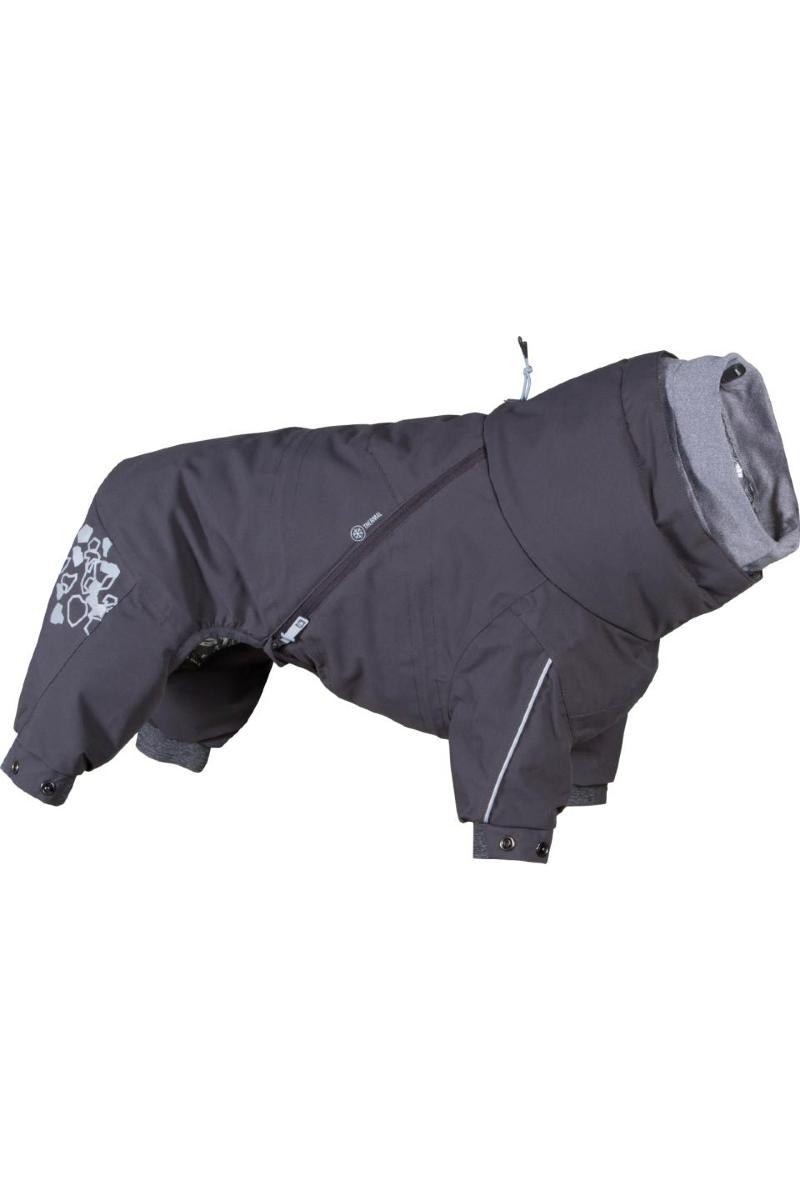 Extreme Overall har et foliefôr som reflekterer kroppsvarmen tilbake mot kroppen og aktiverer blodsirkulasjonen, samt et mykt, vann- og vindtett overflatemateriale av høy kvalitet. Den har en høy hette som beskytter hunden mot vind og snø.