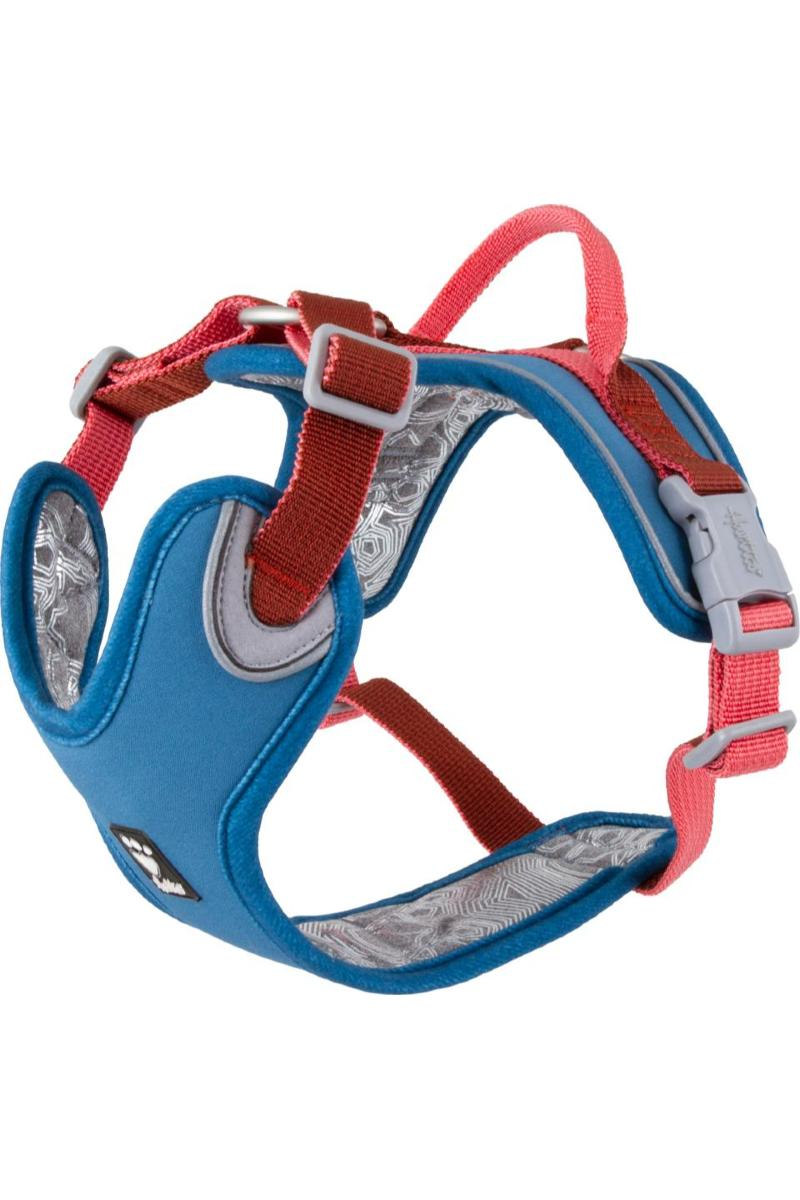 Slidstærke spænder klikkes hurtigt af og på - uden at skulle løfte hundens forben - mens de justerbare nakke- og brystremme garanterer en behagelig pasform.