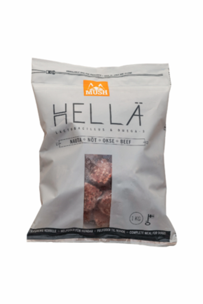 Hellä® Okse Storfe er et funksjonelt fullfôr med høyt proteininnhold. De fermenterte grønnsakene i fôret er rike på melkesyrebakterier som er viktige for tarmens funksjonalitet. En høykvalitets blanding av omega-3 fisk- og olivenolje er tilsatt, der nyttige fettsyrer støtter kognitive funksjoner og er bra for pelsen, huden og hjertet. Produktene er balansert med en naturlig vitamin- og mineralmiks bestående av nøye utvalgte urter og vekster som hjelper på hundens allmenntilstand.