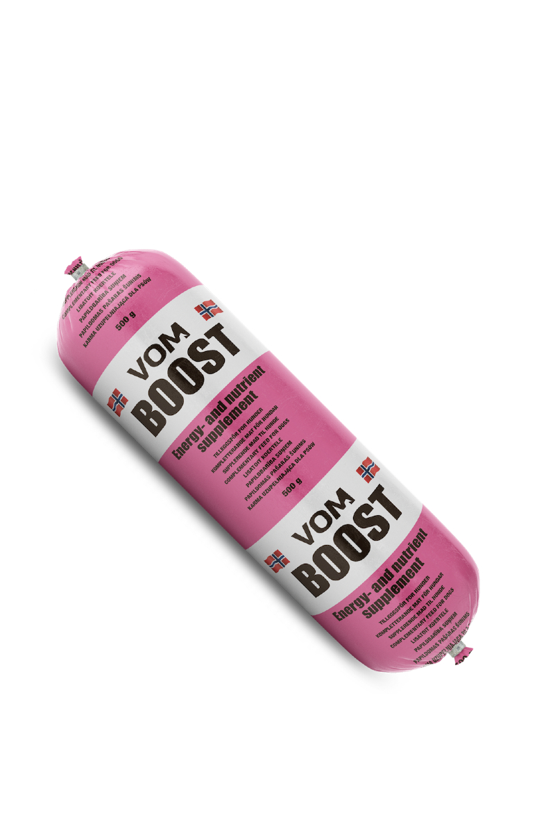 VOM Boost er et energi- og næringstilskudd for aktive hunder. Produktet er kategorisert som tilleggsfôr, laget av kyllingskinn. VOM Boost inneholder mye fett, og animalsk fett inneholder over dobbelt så mye energi som proteiner og karbohydrater. Dette er et energirikt produkt og inneholder hele 3310 kcal/kg.