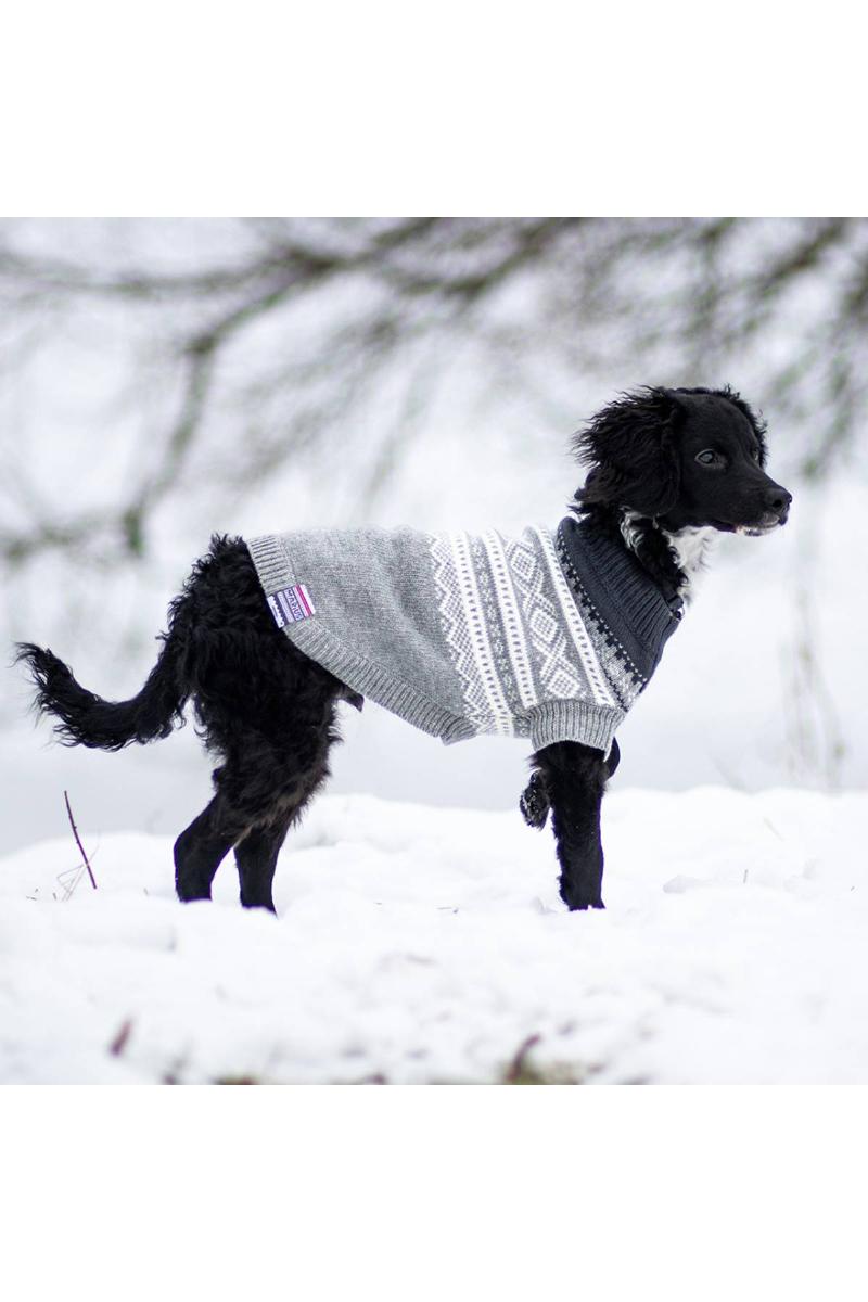 Den klassiske Marius®© hundegenseren gråmelert med hvitt og mørkegrått. Denne hundegenseren er i 70% ull og tilpasset vårt norske kalde klima. Den er svært myk og behagelig å ha på, og varmer godt. Mariusgenser til hund har vært en av våre definitive favoritter i lengre tid. Med strikkede hundeklær det enkelt å lære hunden å ha de på. Et mykt og behagelig plagg med god stretch.
