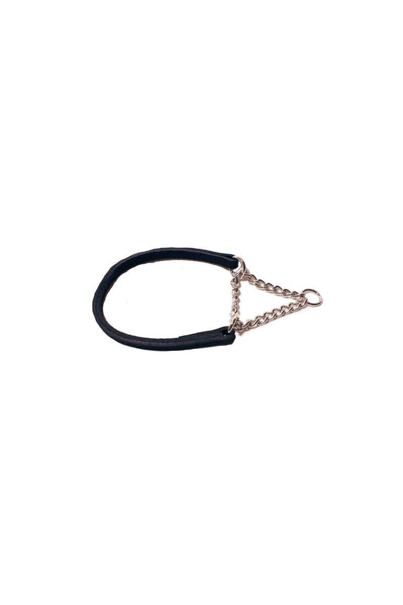 AL Halvstrup Rundsydd Lærhalsband M/Kjetting * 60cm Svart