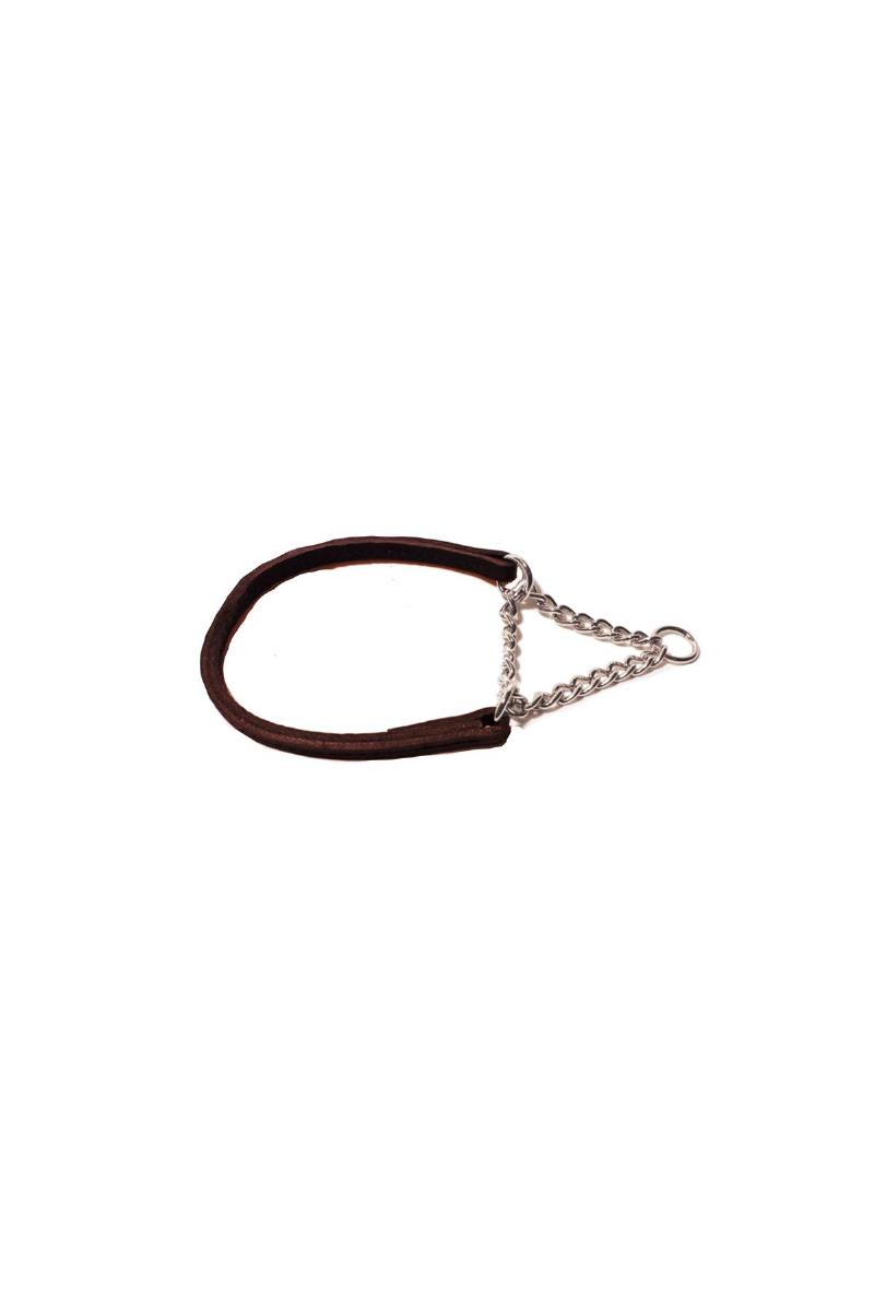 AL Halvstrup Rundsydd Lærhalsband M/Kjetting * 65cm Brun