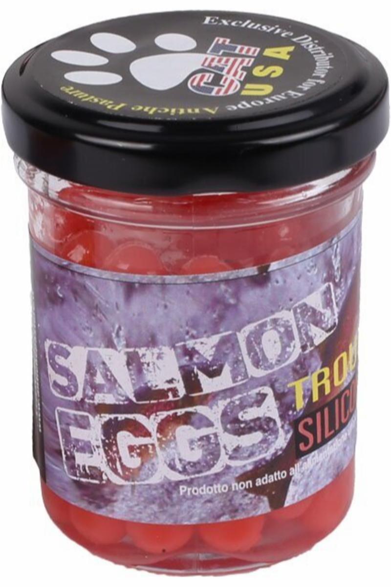 Lakseegg som etterligner de naturlige både med form og duft. Meget “giftig” agn til Røye og Ørret. Kan anvendes sammen med mark eller maggot. 90 stk egg pr boks
