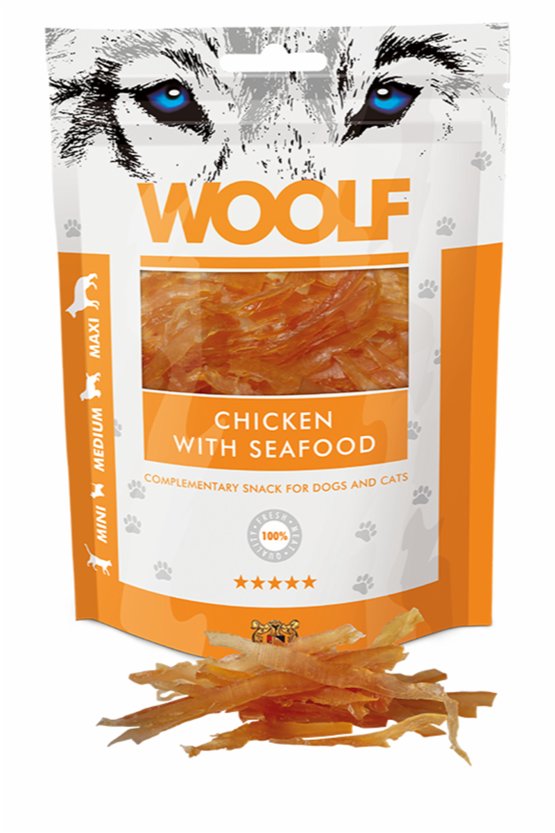Chicken and Seafood snacks er laget av 100 % høykvalitets proteinkilder for å gi den høyeste kvaliteten og det beste næringsinntaket.
