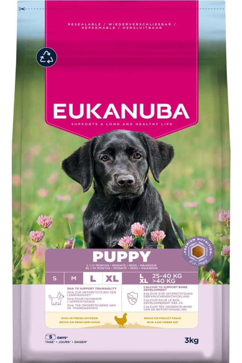 Eukanuba Puppy Large Breed tørrfôr er rikt på fersk kylling og passer perfekt til valper av store raser (25 kg) i alderen 1 til 12 måneder (eller 1-14 måneder for ekstra store raser). De utvalgte ingrediensene gir nøye tilpasset ernæring for å støtte valpens vekst og utvikling.
