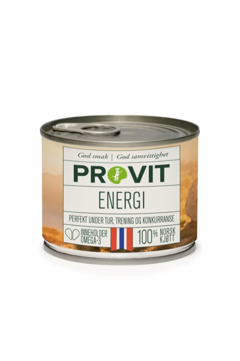 Provit Energi er et tilleggsfôr som bidrar til å øke hundens prestasjonsevne. Med denne “lunsjboksen” i sekken vil hunden din kunne prestere maksimalt ved fysiske anstrengelser. Lett fordøyelig fett og proteiner opprettholder hundens energi- og prestasjonsnivå under trening, jakt og konkurranser. Provit Energi er populær som snack og “jaktlunsj”. Den passer perfekt som et tilskudd under tur, trening og konkurranse for økt energi og utholdenhet.