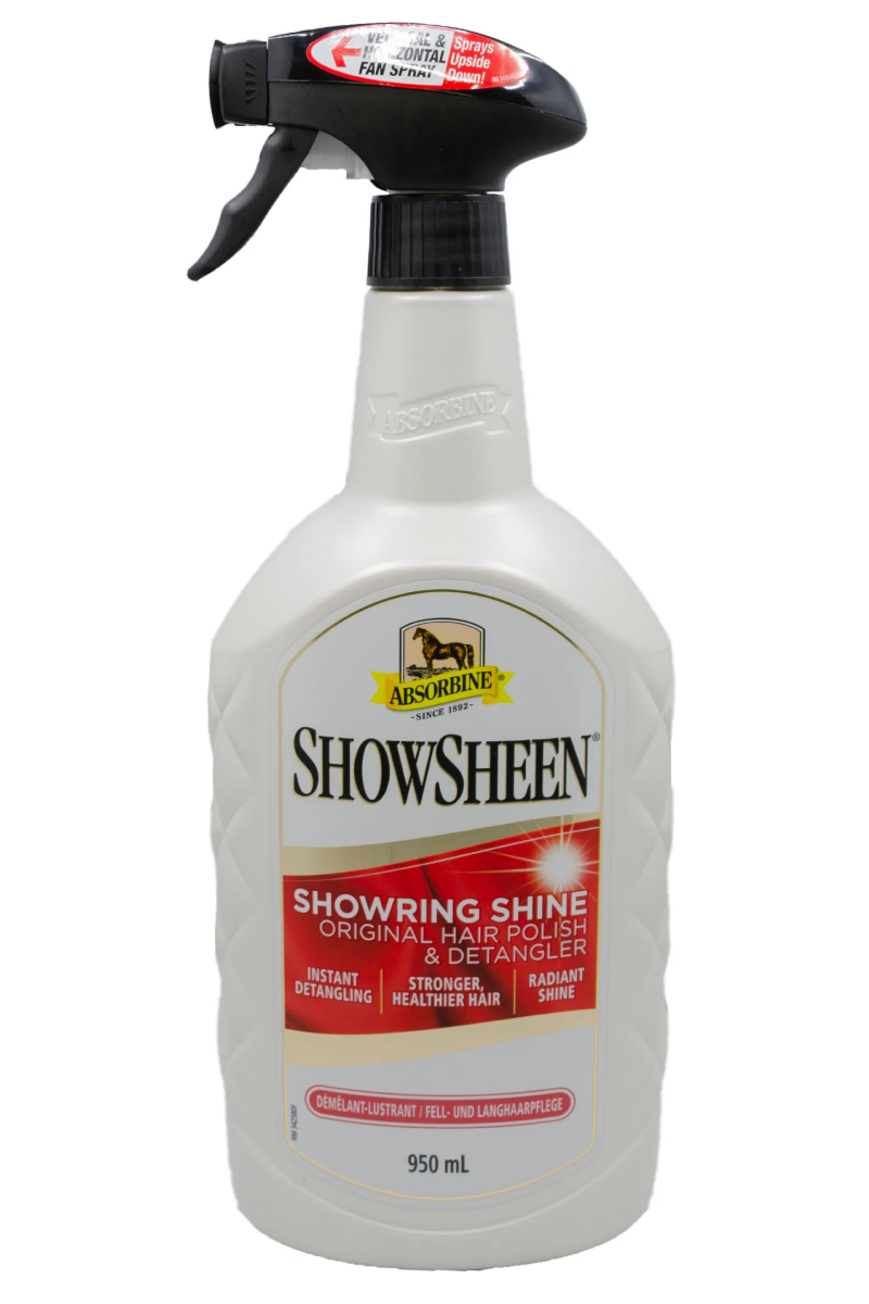 Absorbine Showsheen Showring Shine gjør hestens man, hale og pels skinnende og flokefri!